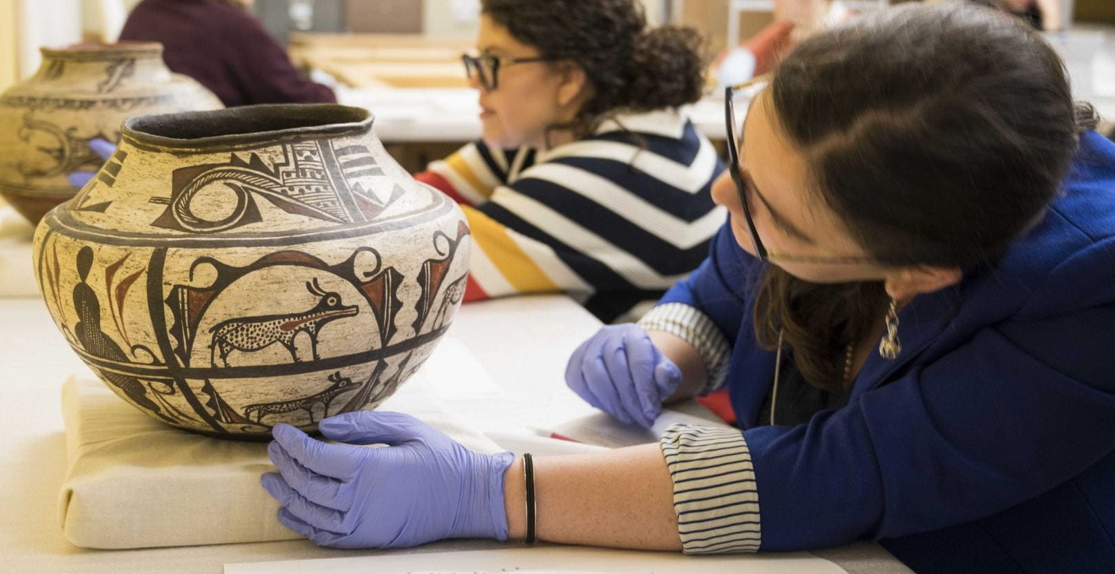 Victoria Sunnergren is the Associate Curator of Native American Art at Shelburne Museum in Shelburne, Vermont. She holds a doctorate in Art History from the University of Delaware. Her dissertation was titled Clay Kin: A Transhistorical Study of Pueblo Pottery, which looked at the role of gender, material agency, and time in historic and contemporary Pueblo pottery. Her broader research interests focus on Indigenous art of North America, material culture studies, and digital humanities. She most recently curated Built from the Earth: Pueblo Pottery from the Anthony and Teressa Perry Collection at the Shelburne Museum, which was on view in 2023. Her current projects include a collection catalogue and planning inaugural exhibitions for the Perry Center of Native American Art.